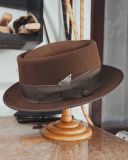 Crafted with a felt finish, the Porkpie Hat was uniquely designed with a round, telescope crown. This high-quality, statement hat features a luxurious felt finish appropriately worn for any occasion.